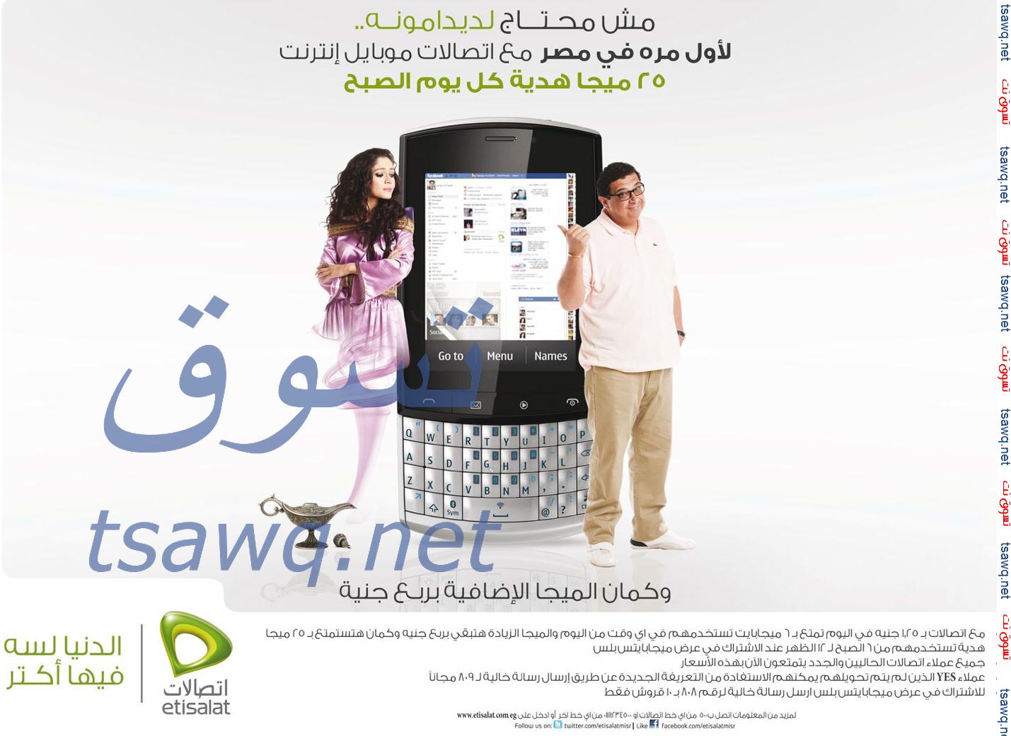 مع اتصالات موبايل انترنت 25 ميجا هدية كل يوم الصبح اعلان 22-6-2012